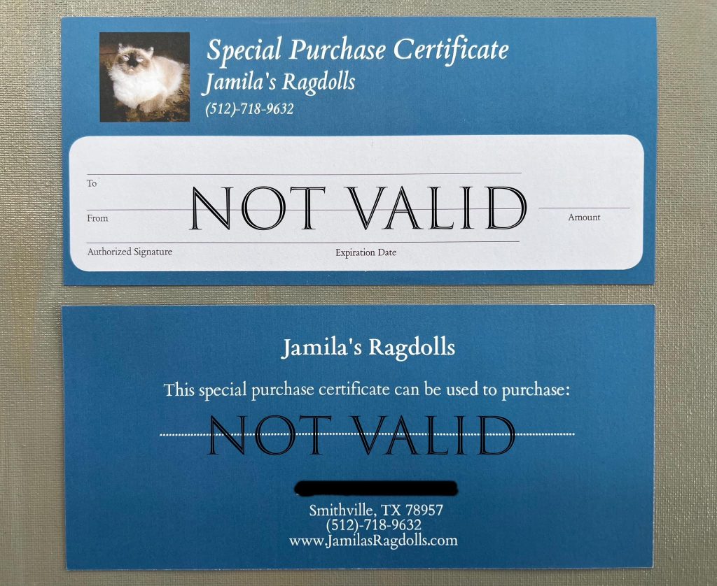 It secures a discounted price on any of our future kittens, our kittens are usually priced around $4200.00. This certificate pays for your kitten in full.
